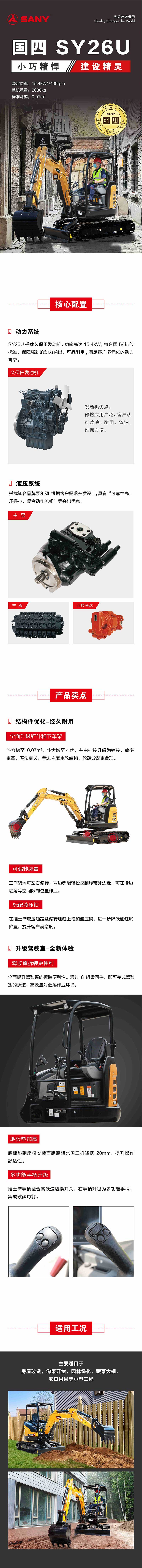 油類和冷卻液容量 | 燃油箱:34L 液壓油箱:27L 發(fā)動機油:3.5/1.8L 散熱器:水散2.4/油散1.7L 終傳動:2×0.6L |